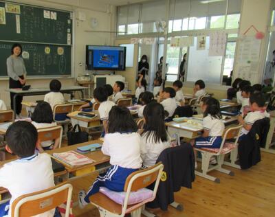 それぞれの場所で、クイズとじゃんけん大会をし、学校を巡りました。明るい笑顔とともに、楽しそうな声が響きわたりました。