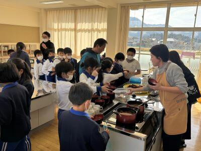 見学に来た3年生も味見をさせてもらって、明日からの味噌づくりへの意欲を高めました。