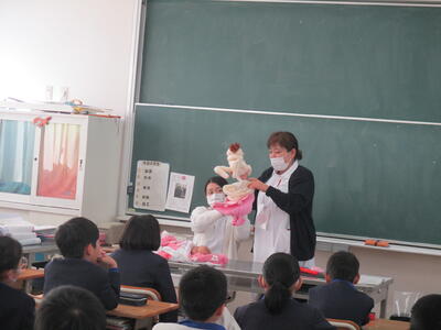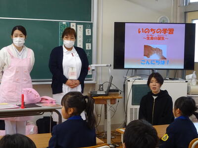 宍粟総合病院から講師として2名の看護師の方にお越しいただき、1年生と4年生で「命の授業」を実施していただきました。
