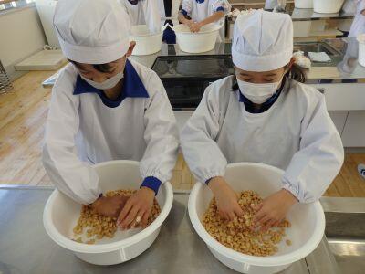 12月18日(木)に、3年生が味噌づくりを体験させていただきました。