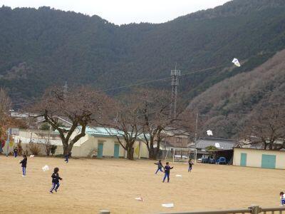 たこあげ 投稿: 管理者 (01/15) 1年生が、新春の恒例行事である「たこあげ」をしました。 風が弱かったので、走りながらたこを高くあげて楽しみました。 たこには、それぞれが思い思いの絵を描いています。 冬の楽しみの一つであるたこあげをして、運動場が笑顔でいっぱいになり、体もほっこり温かくなりました。 -