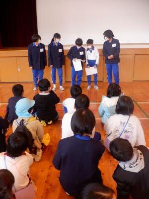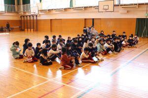 今日は、入学説明会と並行して体験入学を行いました。新入生と1年生が教室で、その後新入生と5年生が体育館で交流しました。