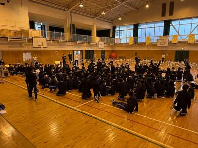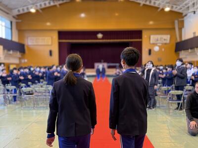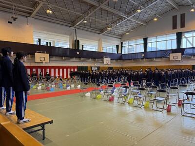 卒業式前最後の登校日の今日は、式練習の仕上げと、在校生のみんなで会場準備や掃除を行いました。