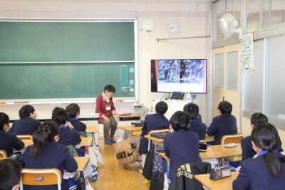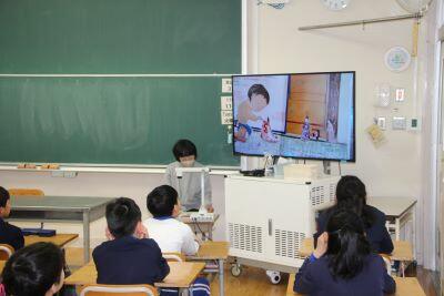 そして次に、今年度4月からの学校生活の動画をみました。入学式から始まって遠足や中学校との交流会、参観日などの様々な楽しい行事や授業があることを紹介しました。