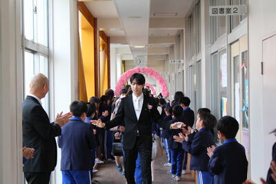 最後に、思い出の残る校舎をお家の方と一緒に歩き、在校生、職員でお見送りをしました。